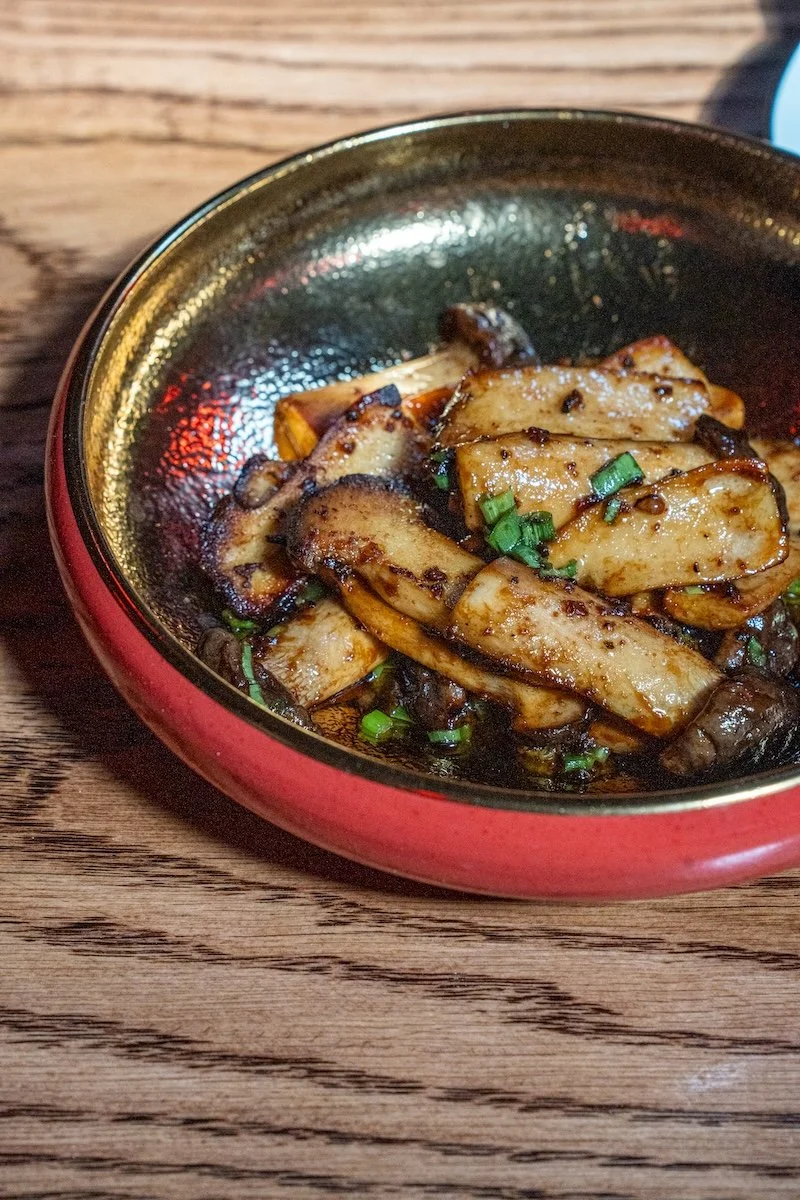 Soft tofu in a spicy sauce, with minced pork and garnished with green onions. Comes with side of rice, seaweed salad, and pickled daikon.