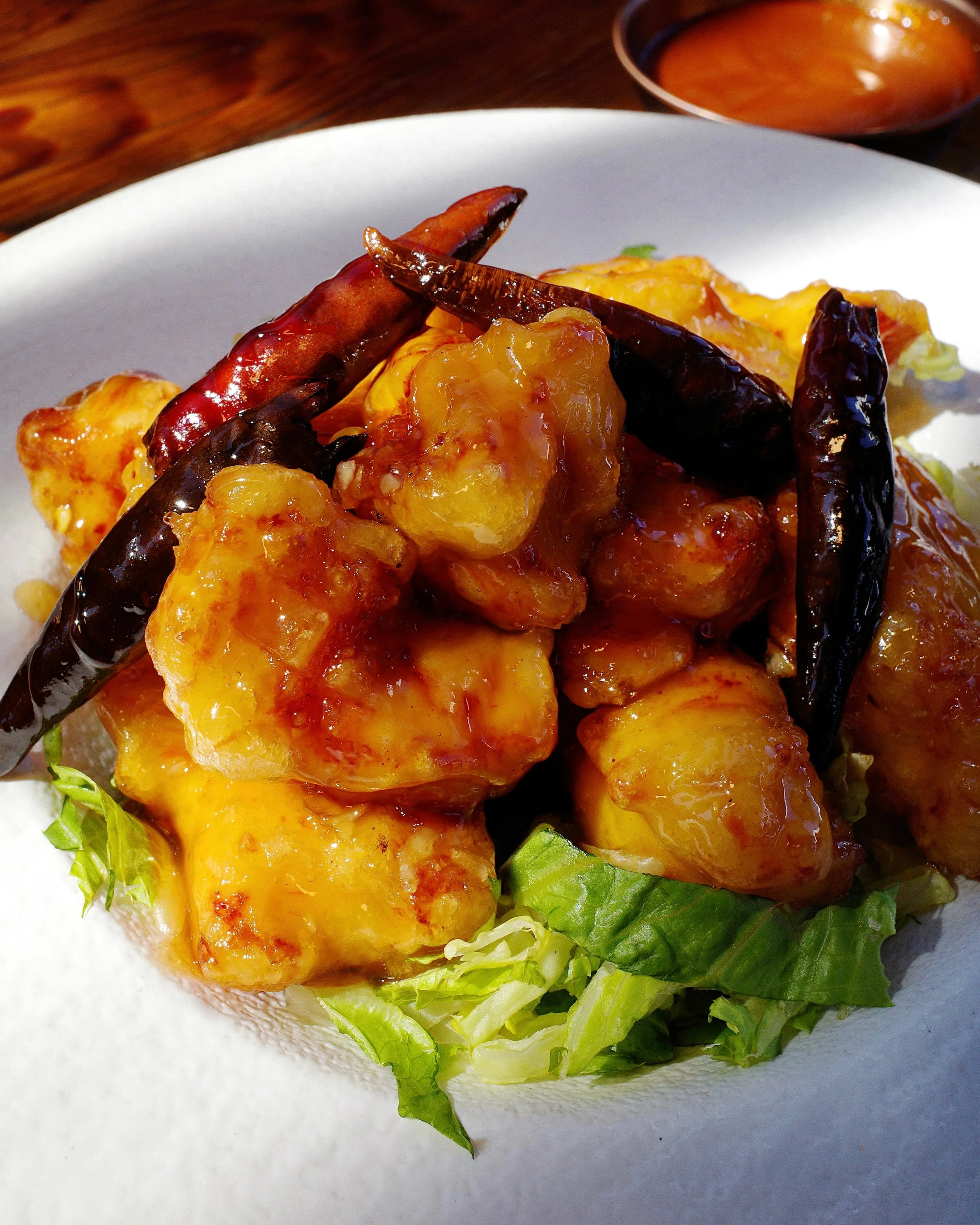 Spicy Battered fried chicken bites, chili peppers and scallions. Served with side of spicy mayo.